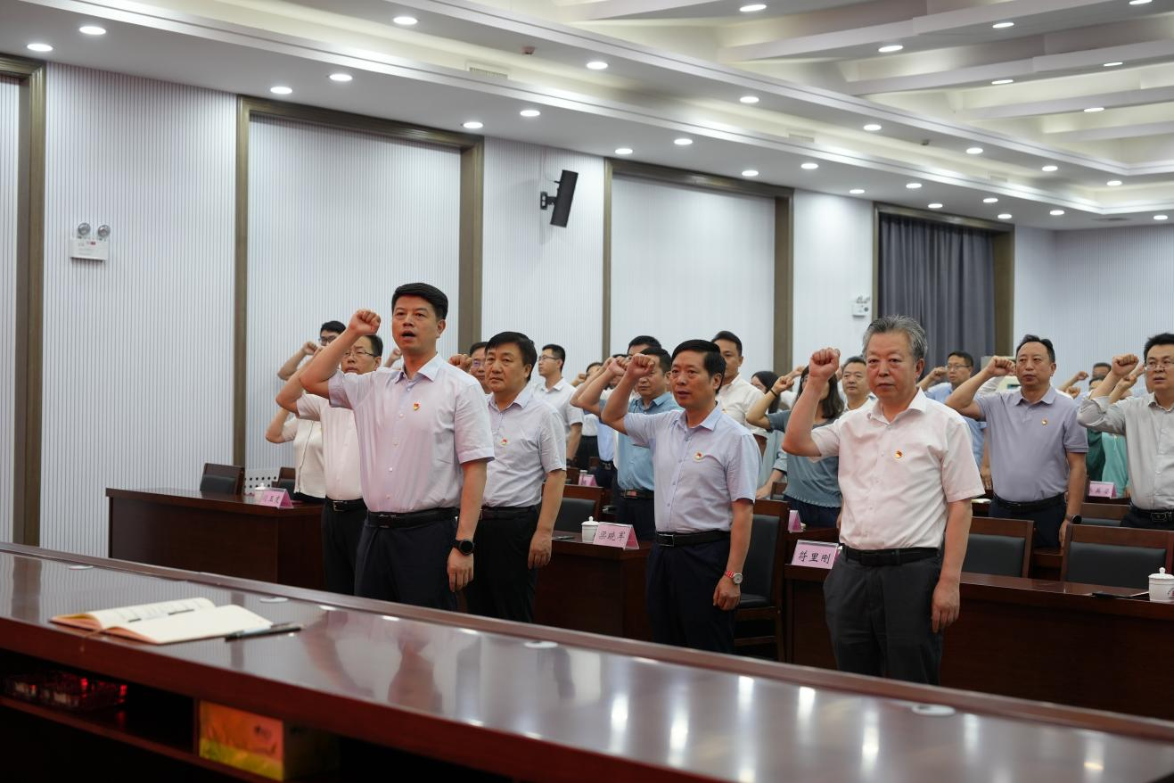 國歌嘹亮,誓言鏗鏘。大會(huì)在雄壯的國歌聲中拉開帷幕,全體參會(huì)人員莊嚴(yán)肅立,齊唱國歌。隨后在黃巍同志的領(lǐng)誓下,全體黨員面向黨旗,高舉右拳,莊嚴(yán)宣誓?,F(xiàn)場鏗鏘有力的宣誓聲,既傳達(dá)出身為共產(chǎn)黨員的自豪感和使命感,也表明了大家堅(jiān)定不移聽黨話、跟黨走的決心和信念。